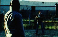 A window scene - presumably showing people looking out at the crumbling of Newark - may also reflect scenes of the Kane and the editorial staff looking out over the city they cover. Reflected faces in glass is typical in both Wells' work as well as Spielberg's as is having the camera look down upon characters from above such as Kane standing amid stacks of his newspapers. Both film makers use devastated landscape for effect, such as the lone character walking back to the ruins of the exploded bridge in the trailer and the lone Kane strolling through the ruins of his campaign for governor.